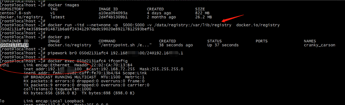 注意: ip地址是私有仓库容器的地址,不是宿主机的ip地址。