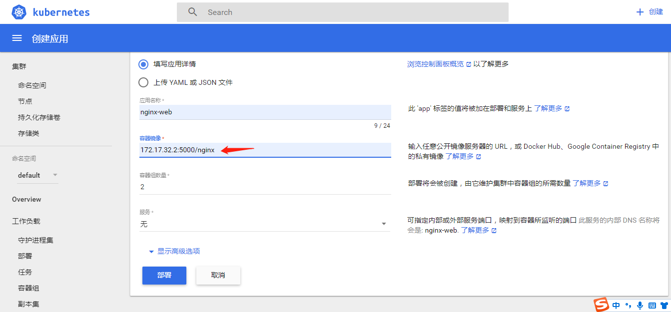 k8s使用本地仓库镜像创建pod,可通过Dashboard页面去创建,也可通过命令去创建。