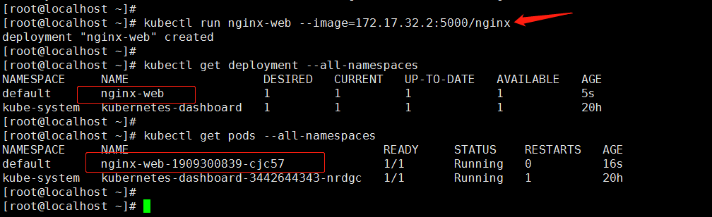 kubectl run nginx-web --image=172.17.32.2:5000/redis --port=6379 --replicas=5