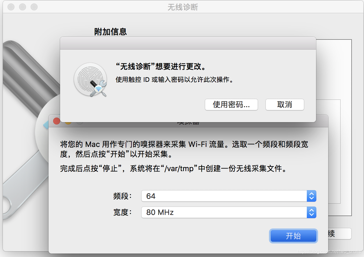 8)选定信道和带宽之后,点击开始,可能需要输入管理员密码: