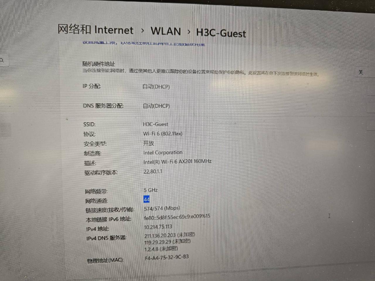 信道:注意查看你需要抓的网络的信道一定要正确,通过系统设置》网络和Internet>WLAN>连接的wifi