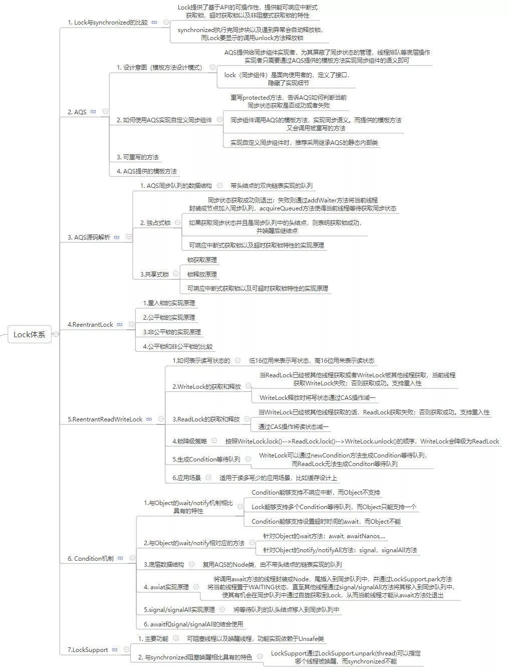 包含Lock与synchronized的比较、AQS、AQS源码解析、ReentrantLock、ReentrantReadWriteLock、Condition机制、LockSupport