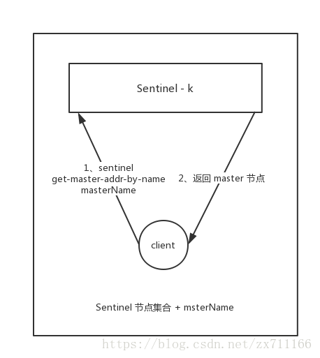2.客户端实现基本原理 - step2:向可用的Sentinel节点发送sentinel的get-master-addr-by-name的请求,参数masterName;获取master节点信息。