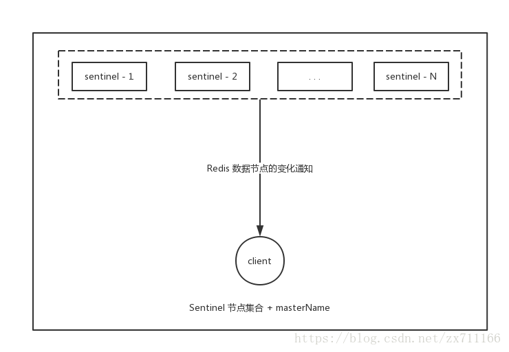 内部是一个发布订阅的模式,client订阅sentinel的某一个频道,该频道里由谁是master的信息,假如由变化sentinel就在频道里publish一条消息,client订阅就可以获取到信息,通过新的master信息进行连接。