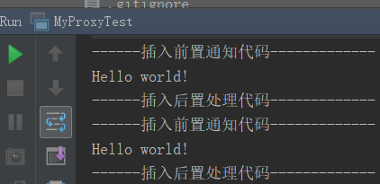所以,我们可以看到在打印目标方法调用输出结果前后所插入的前置和后置代码处理。
