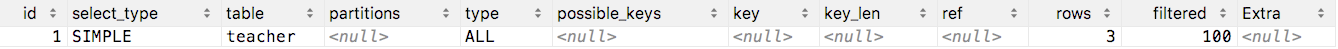 mysql> explain select * from teacher;