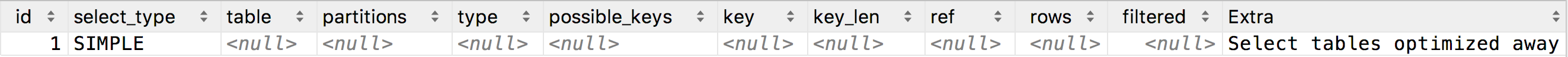 mysql> explain select max(id) from teacher;