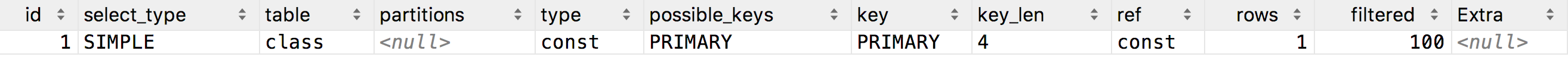 mysql> explain select class_id from class_teacher where class_id = 1;
