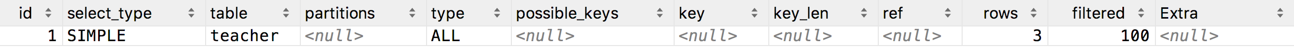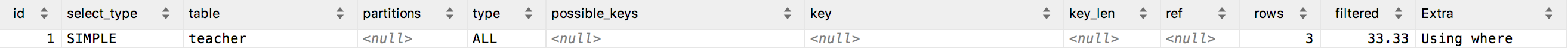 mysql> explain select teacher_name from teacher where teacher_name = 'a';