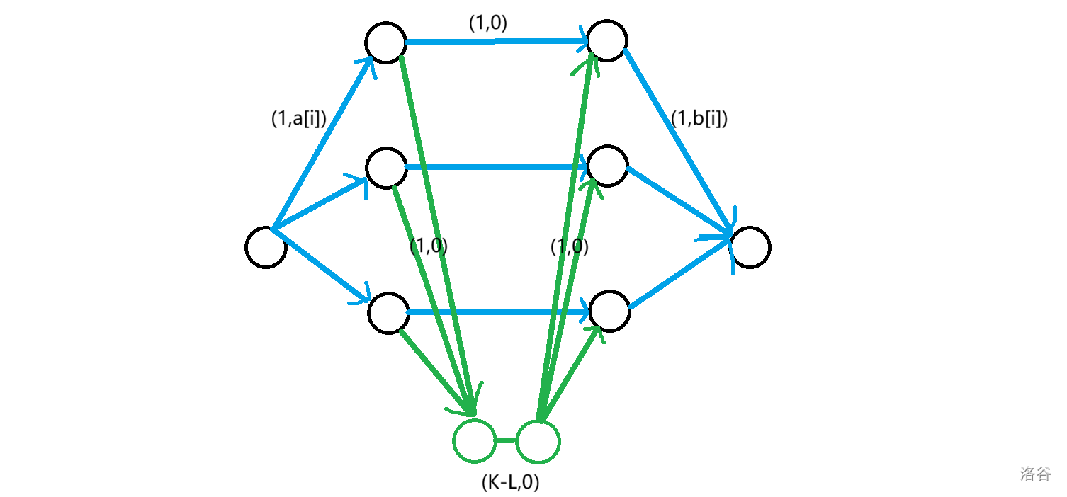 给定两个长度为 \(n\) 的正整数序列 \(\{a_i\}\) 与 \(\{b_i\}\),序列的下标为 \(1, 2, \cdots , n\)。现在你需要分别对两个序列各指定恰好 \(K\) 个下标,要求至少有 \(L\) 个下标在两个序列中都被指定,使得这 \(2K\) 个下标在序列中对应的元素的总和最大。