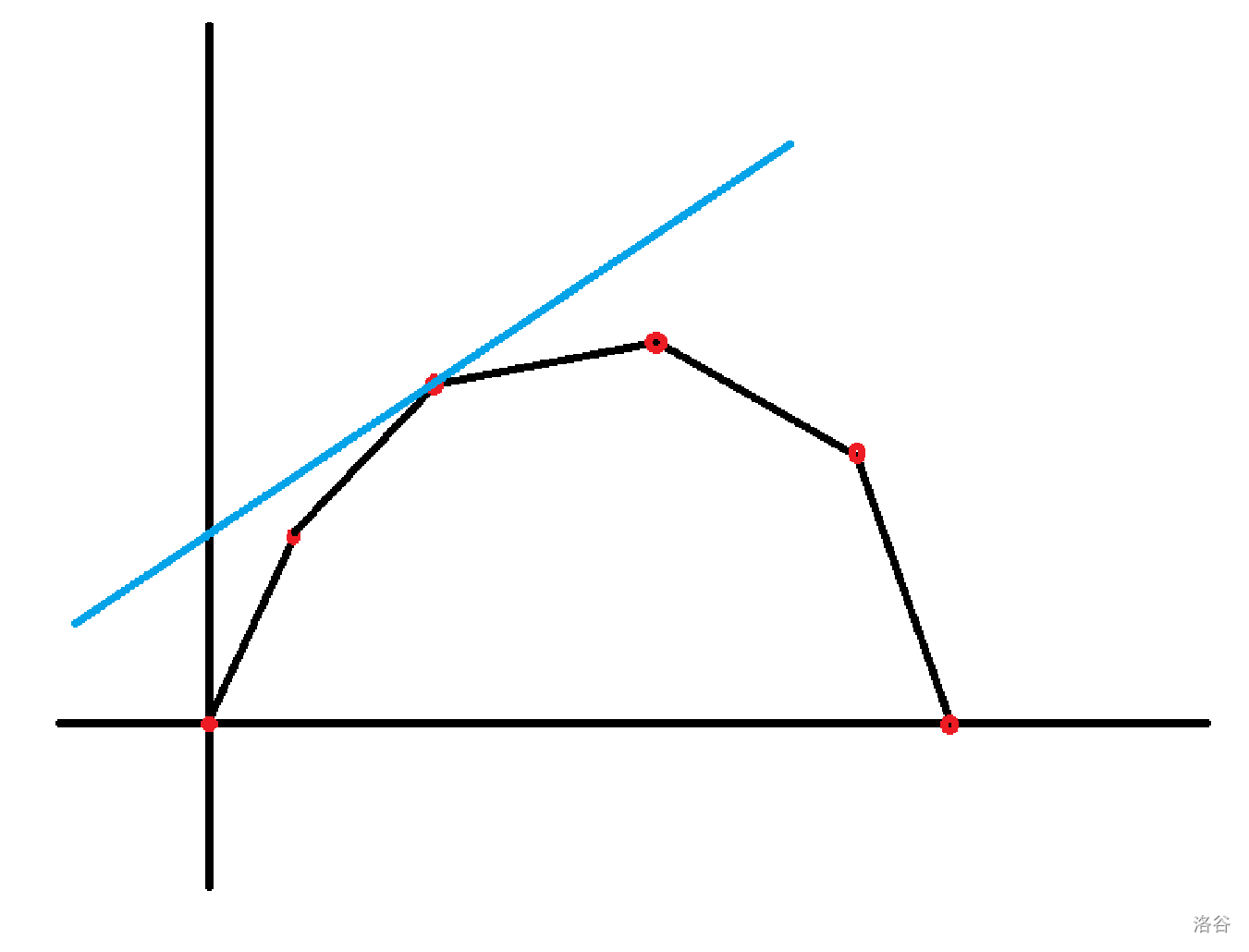 发现当确定了斜率 \(k\) 后截距的最大值就确定了,所以考虑二分斜率,知道交点落在 \(m\)。
