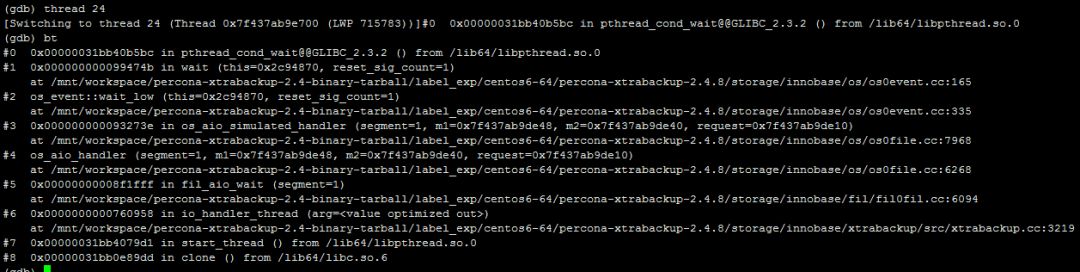 后来DBA的同学也反映,他们的xtrabackup程序也出现了hang死的问题,最后我们使用GDB对这个备份程序分析后发现,问题的原因出现在内核的一个BUG上。