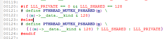 下面我们要确定一件事情就是,当前程序是否命中了这个BUG,也就是说当前锁是否是非共享锁。我们查看pthread的代码,可以看到__kind的值决定了其传给内核的锁是共享还是非共享的。