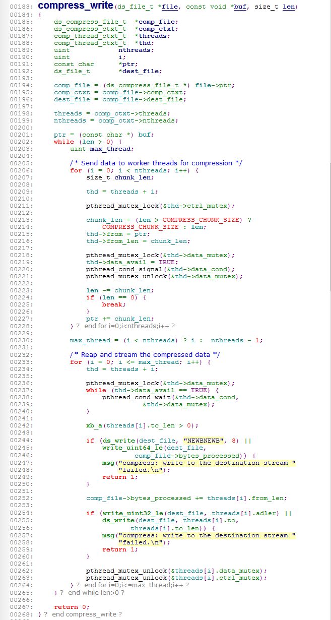• 每等到一个压缩线程干完活,就将数据写到文件中,然后释放这个压缩线程控制锁