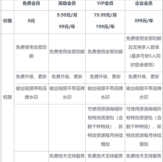 万兴神剪手:通过提供特效资源库、无水印和免费技术支持服务的会员制收费盈利。