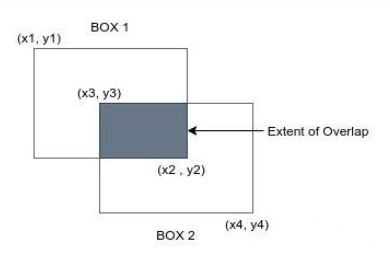 - BOX1 和BOX2 的并集部分,既BOX1面积 + BOX2面积 - 阴影部分