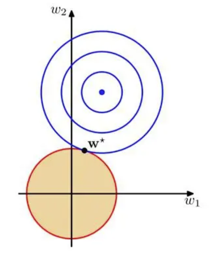 黄色区域的边缘处,均有可能取到最优解$w^* $。最优解不被限制在轴上,模型参数都可取到值,所以L2 可以分散特征,同时表现特征的重要程度。