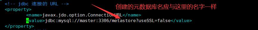 <value>jdbc:mysql://master:3306/metastore?useSSL=false</value>