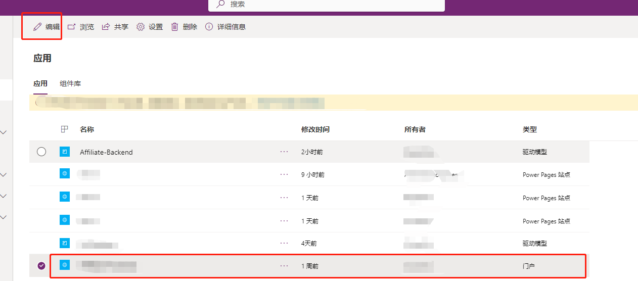 1.选中需要修改的门户应用