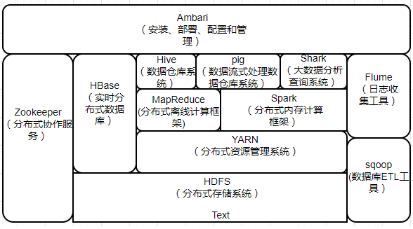 Hadoop生态的主要的核心组件有HDFS和MapReduce,其他还包括ZooKeeper、HBase、Hive、Pig、Mahout、Sqoop、Flume、Ambari等功能组件