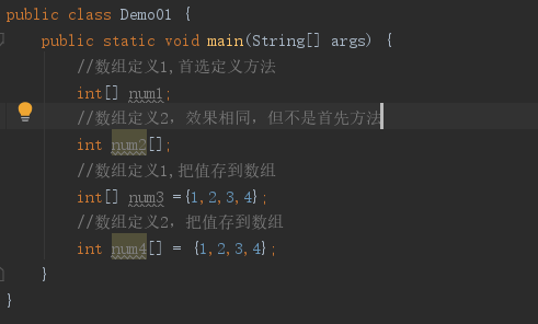 3.数组的默认初始化,数组是引用类型,它的元素相当于类的实例变量,因此数组一经分配空间,其中的每个元素也被按照实例变量同样的方式被隐式初始化