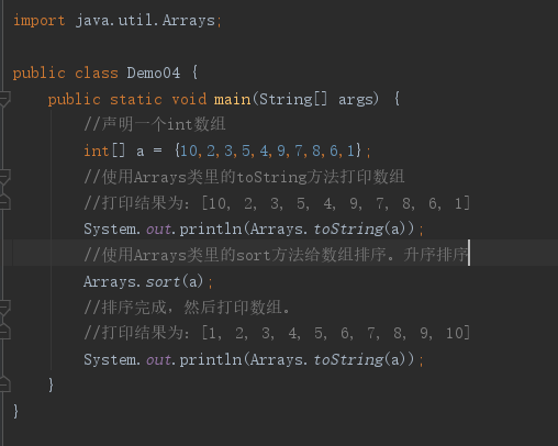 2.由于数组对象本身并没有什么方法可以供我们调用,但API中提供了一个工具类Arrays供我们使用,从而可以对数据对象进行一些基本的操作。