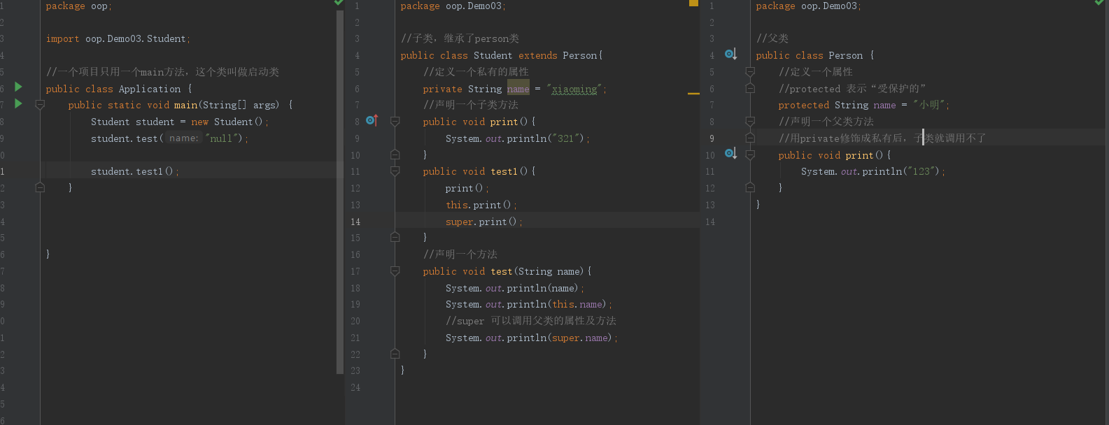 ③修饰符:范围可以扩大但不能缩小; public>Protected>Default>private