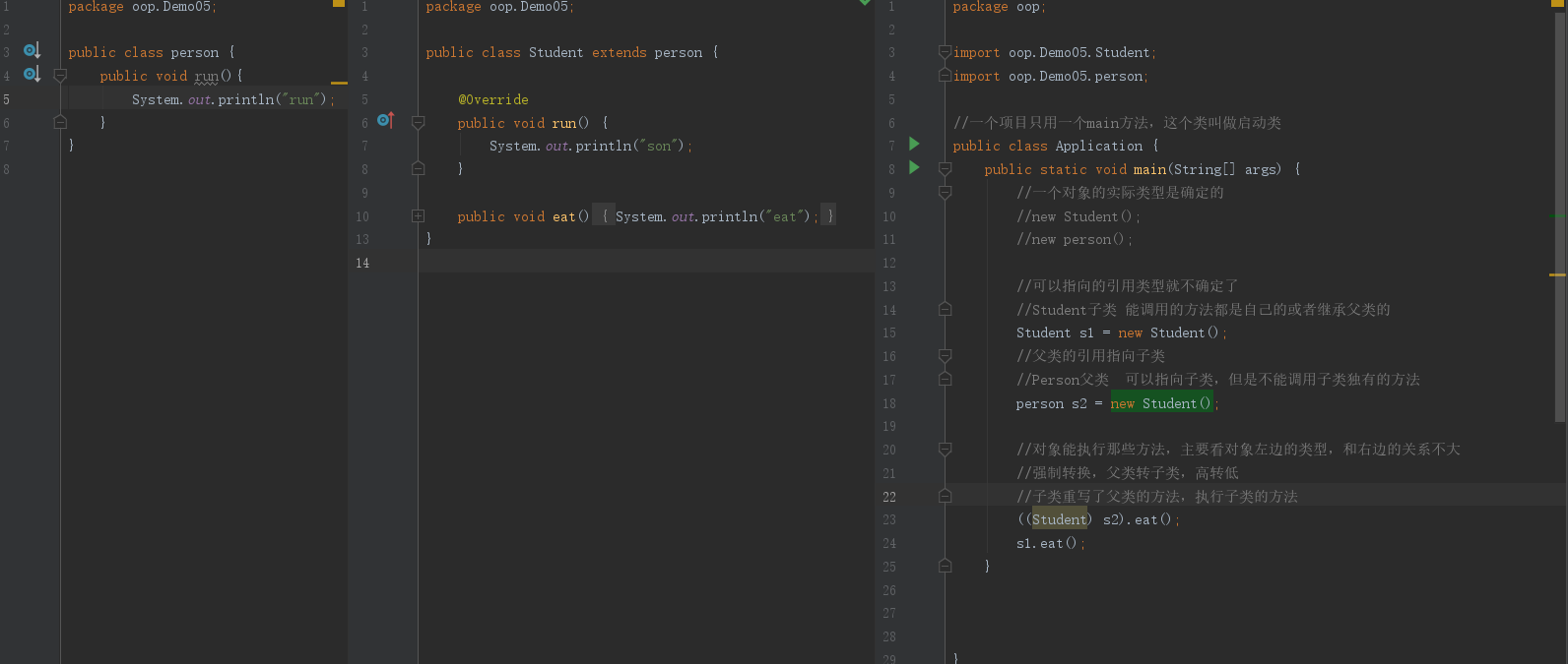 ⑤重写,子类的方法和父类必须一致,方法体不同