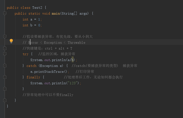 ②在多重catch块后面,可以加一个catch(Exception)来处理可能会被遗漏的异常
