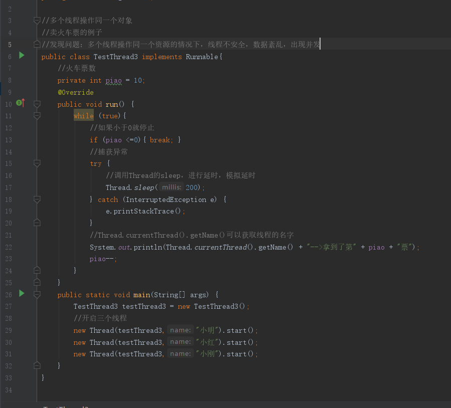 4.很多线程是模拟出来的,真正的多线程是指有多个cpu,即多核,如服务器,如果模拟出来的多线程,即在一个cpu的情况下,在同一个时间点,cpu只能执行一个代码,因为切换的很快,所以就有同时执行的错局