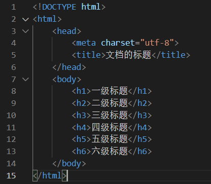 1.标题介绍与应用:标题是通过<h1>-<h6>标签进行定义的。<h1>定义最大的标题<h6>定义最小的标题