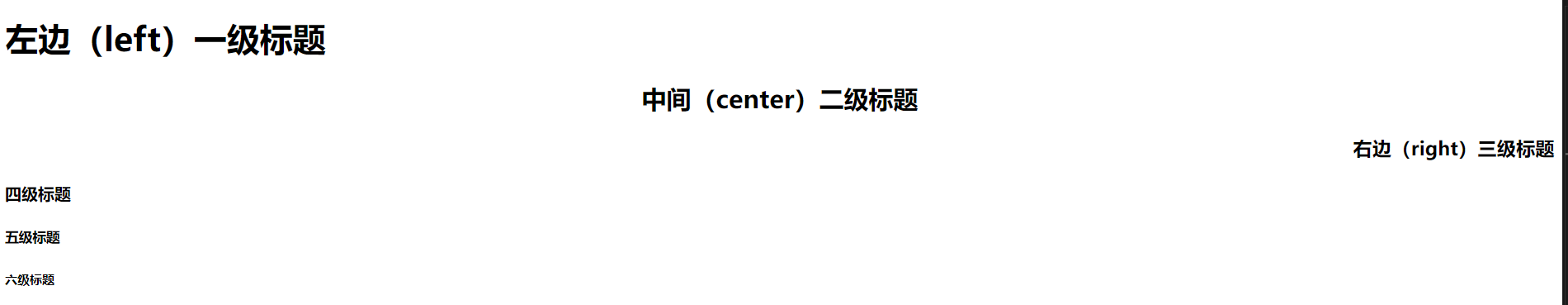 2.标题标签的位置摆放:在标签中添加属性:align="left | center | right"默认居左