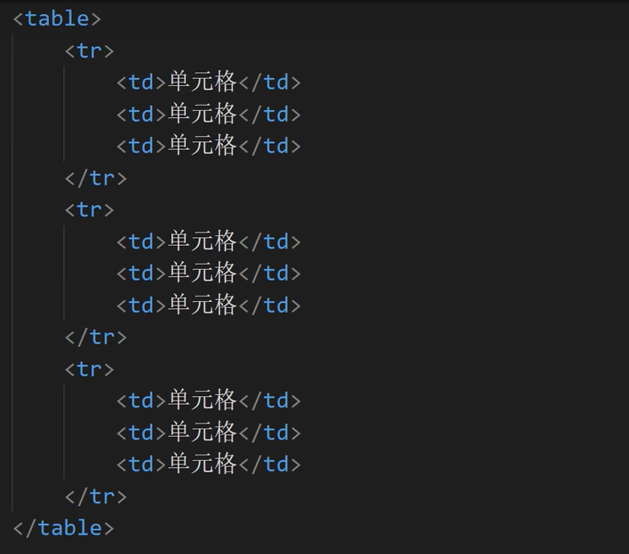 2.表格标签,表格:<table>,行:<tr>,单元格(列):<td>