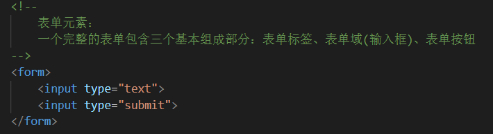 4.表单元素:一个完整的表单包含三个基本组成部分:表单标签、表单域(输入框)、表单按钮