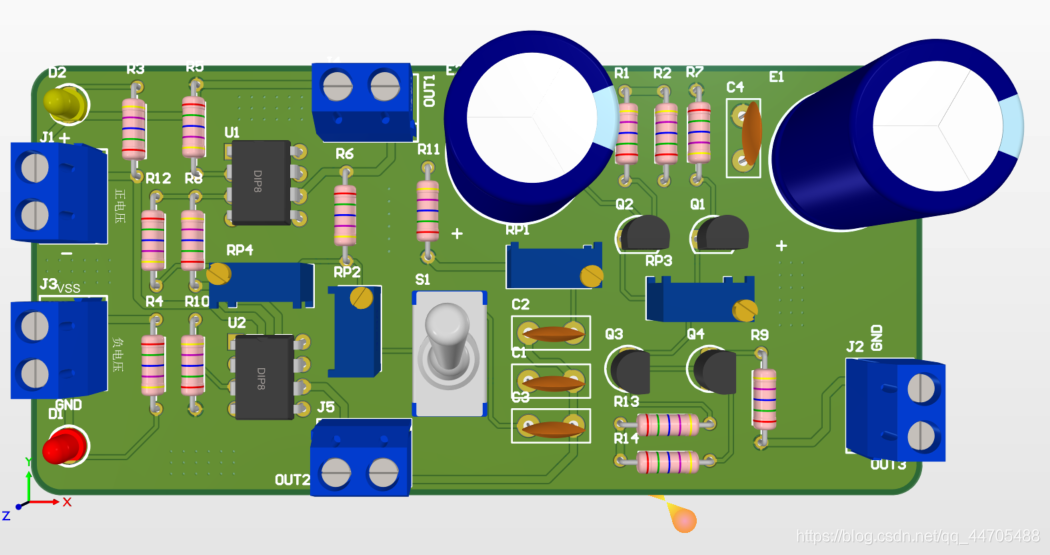 首先展示仿真原理图、PCB图和实物焊接测试图