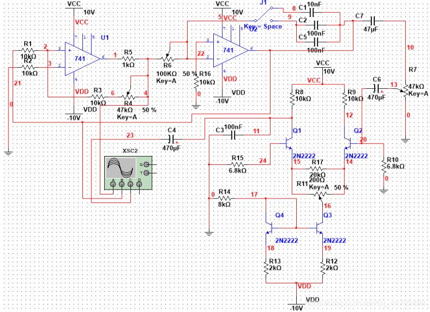 优点:RC振荡电路可产生1Hz~1MH范围的正弦波,产生波形的频率范围很广,正弦波波形较标准,振幅和频率较稳定,频率调节方便.