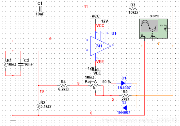 缺点:电路的稳定性和抗干扰较差,调节波形比较费劲。由于正弦波是通过低通滤波实现的,波形还是和正弦波有略微区别。