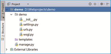 (5)使用Pycharm打开demo项目,查看目录结构,如图15所示。