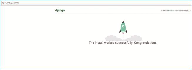 此时可以看到Web服务器已经开始监听8000端口的请求了。在浏览器中输入:“http://127.0.0.1:8000”,即可看到创建的Django项目页面,如图16所示。