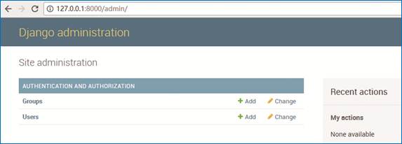 (8)重新启动服务器,在浏览器中访问“http://127.0.0.1:8000/admin”,使用刚刚创建的账户登录,即可看到后台管理界面,如图18所示。