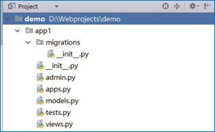 此时,在项目的根目录下可以看到一个名称为app1的目录,如图19所示。