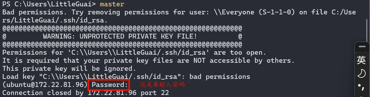 Bad permissions. Try removing permissions for user: \\Everyone (S-1-1-0) on file C:/Users/LittleGuai/.ssh/id_rsa.