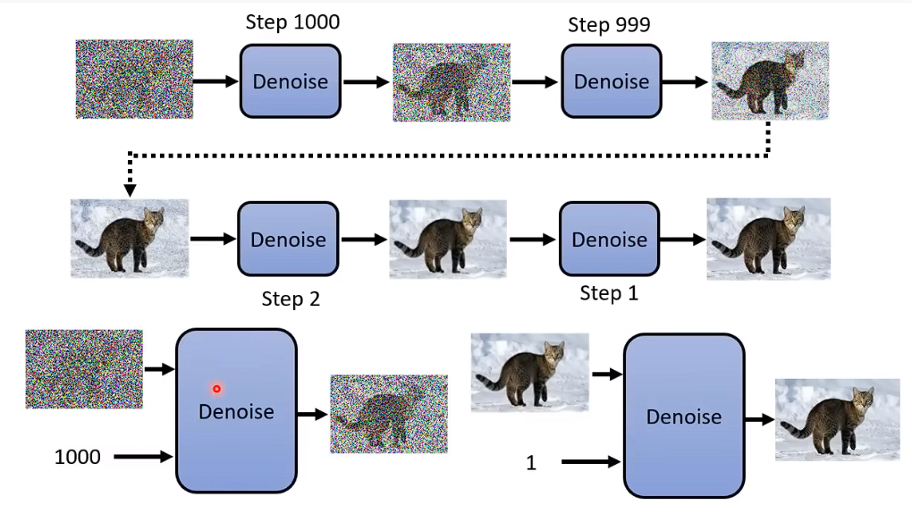 Denoise Model除了要输入 要被输入的那张图片,还要输入这是第几张图片。(即Noise严重的程度)