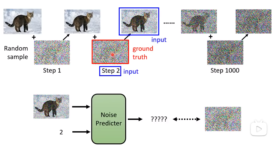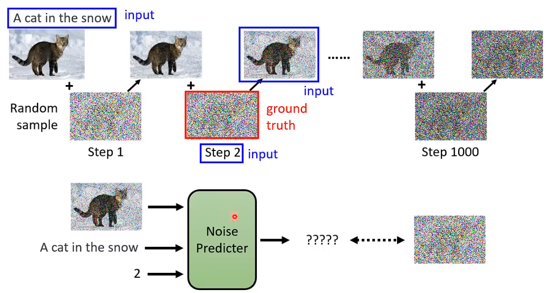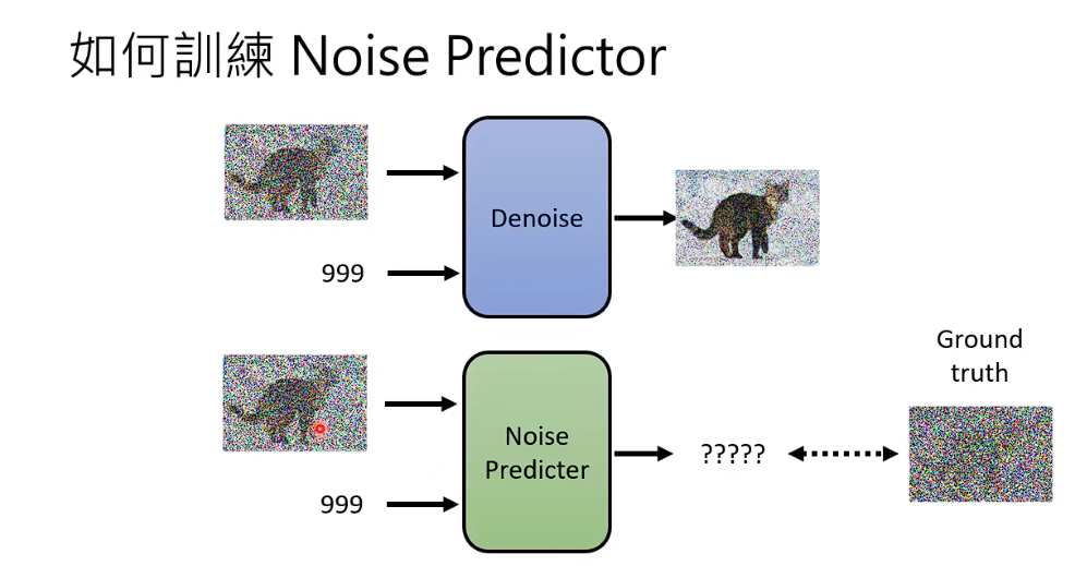 这样加噪之后,你就有Noise Predictor的训练资料了。