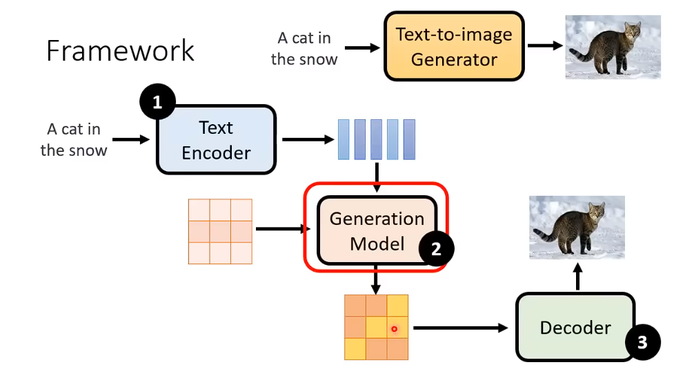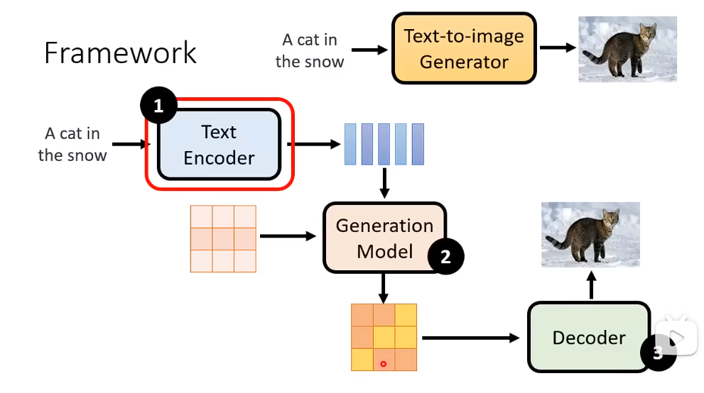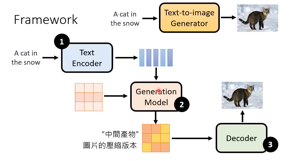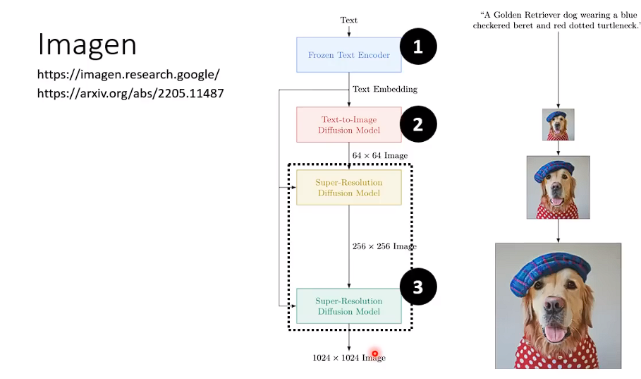 Imagen系列的模型,generation model 部分会产生一个人可以辨识的小图,在Decoder的模块,再过一层Diffusion Model去生成最后的图片。