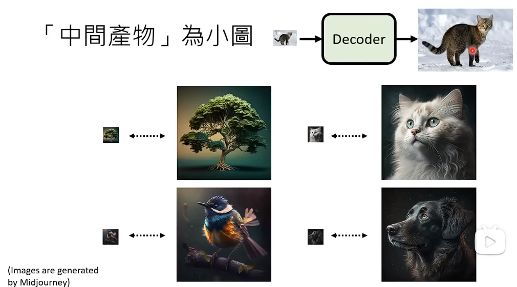 那么Decoder的训练非常的简单,你只需要把你手上的影像都拿出来,然后变成小图, 你就有成对的资料,你就可以把小图变成大图。