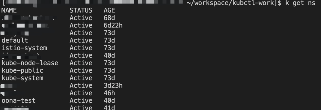 于是,只需要通过-n=${NAMESPACE}就可以指定自己要操作的资源所在的 namespace。比如查看 Pod:kubectl get pod -n=oona-test,同理,查看 Deployment:kubectl get deployment -n=oona-test。