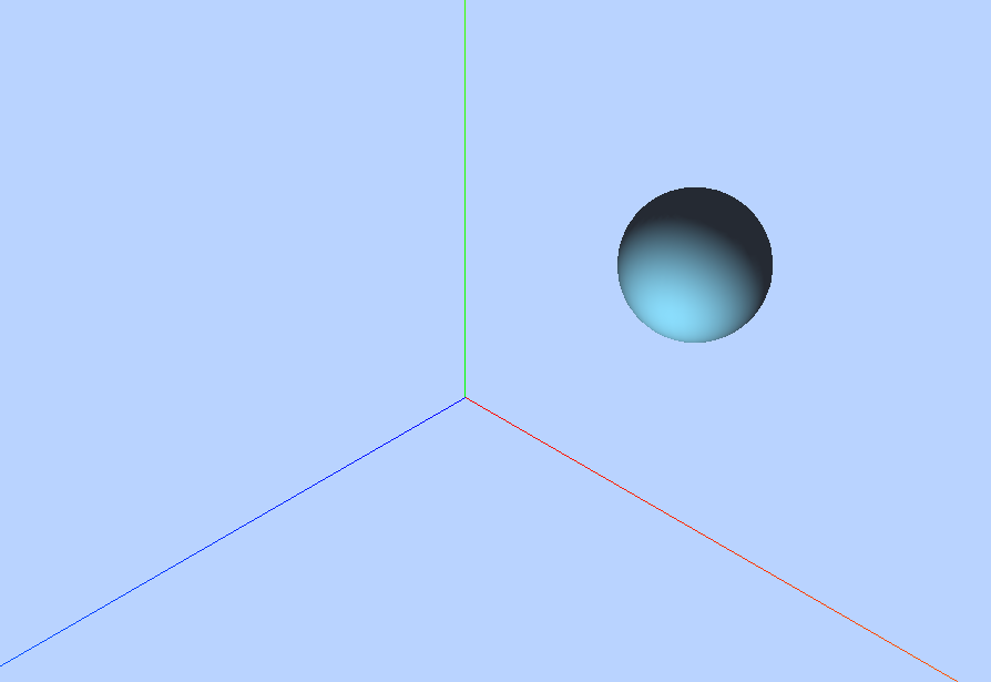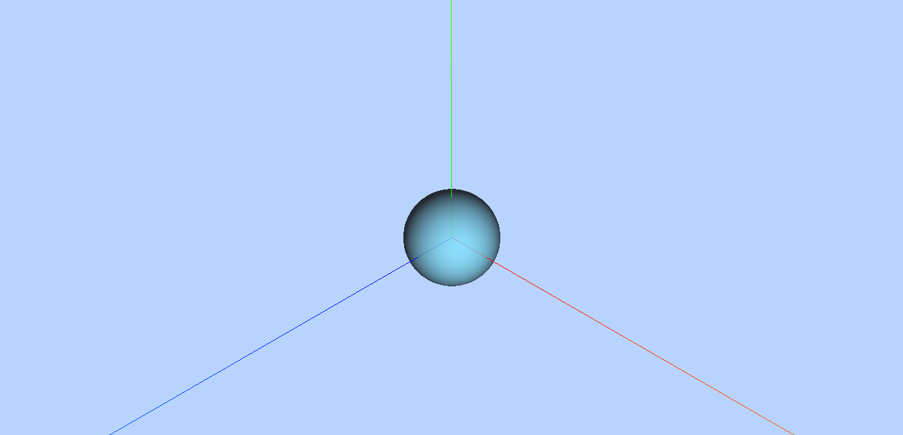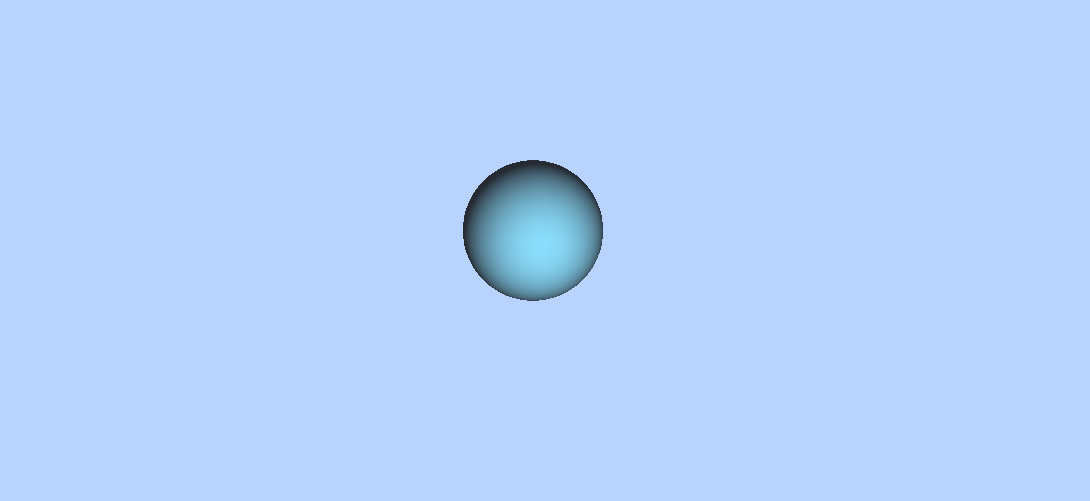 //创建场景对象Scene let scene = new THREE.Scene(); // 创建网格模型 let geometry = new THREE.SphereBufferGeometry(60, 40, 40); //创建一个球体几何对象 let material = new THREE.MeshLambertMaterial({//漫反射 color: 0x7FE0FC, opacity: 0.8,//透明系数 transparent: true//开启透明度 }); //材质对象Material let mesh = new THREE.Mesh(geometry, material); //网格模型对象Mesh scene.add(mesh); //网格模型添加到场景中 //光源设置 //点光源 let point = new THREE.PointLight(0xffffff); point.position.set(400, 200, 300); //点光源位置 scene.add(point); //点光源添加到场景中 //相机设置 let width = window.innerWidth; //窗口宽度 let height = window.innerHeight; //窗口高度 let k = width / height; //窗口宽高比 let s = 400; //三维场景显示范围控制系数,系数越大,显示的范围越大 //创建相机对象 let camera = new THREE.OrthographicCamera(-s * k, s * k, s, -s, 1, 10000); camera.position.set(500, 500, 500); //设置相机位置 camera.lookAt(scene.position); //设置相机方向(指向的场景对象) //创建渲染器对象 let renderer = new THREE.WebGLRenderer(); renderer.setSize(width, height);//设置渲染区域尺寸 renderer.setClearColor(0xb9d3ff, 1); //设置背景颜色 this.$refs.app.appendChild(renderer.domElement) //在你选定的虚拟dom中插入canvas对象 //执行渲染操作 指定场景、相机作为参数 renderer.render(scene, camera);
