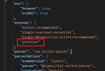 回到.eslintrc.json文件,在extends最底部加上"prettier",这样才会覆盖其他配置