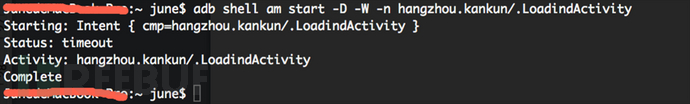 7.打开androiddevice monitor(终端下敲命令monitor或者ddms),终端下运行命令:adb shell am start -D -n {Package Name}/.{Activity},运行效果如图7;